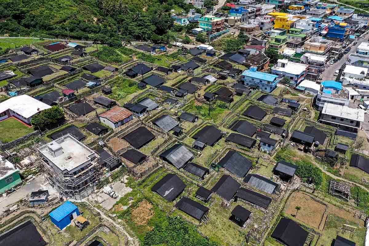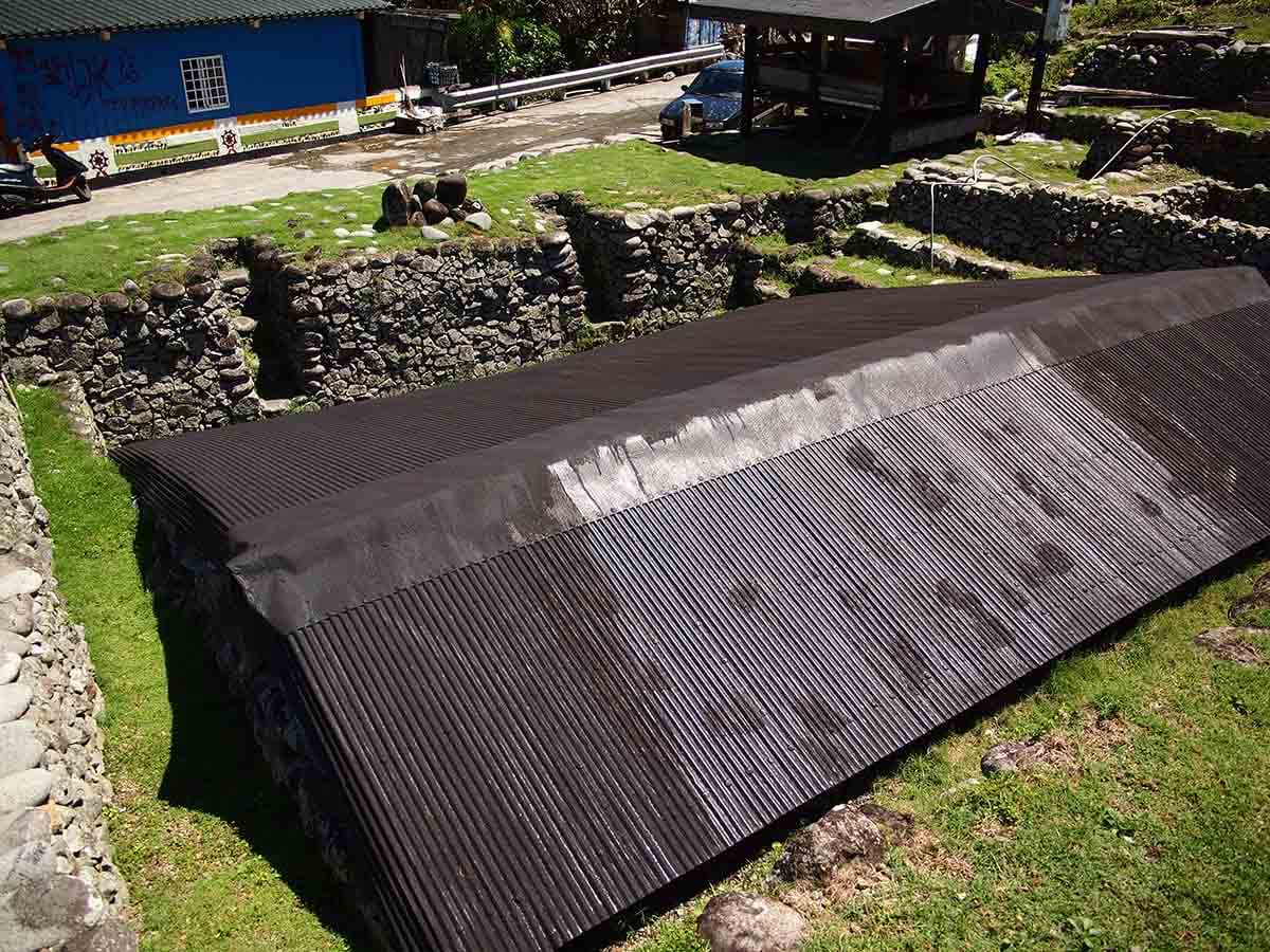 达悟族的聚落位于海边的坡地上,大都倚山面海。 兰屿地下屋为达悟族人因应兰屿岛上高温多雨、多台风的特殊气候,就地取材,岛上的树干为主要建材,四周再辅以石头切成围墙,发展出独特的半地下屋建筑,充分展现生活智慧及造屋技术。(Photo via Wikimedia, by othree, CC BY 2.0)