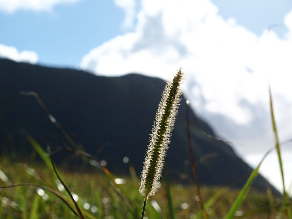 步道前段长著与人齐高的芒草,越到尽头处、则渐渐转换成较为低矮的草地,最后方能见到整片广阔的草原。(Photo via "othree" © 兰屿 Day 5 青青草原 @ flickr, CC BY 2.0)