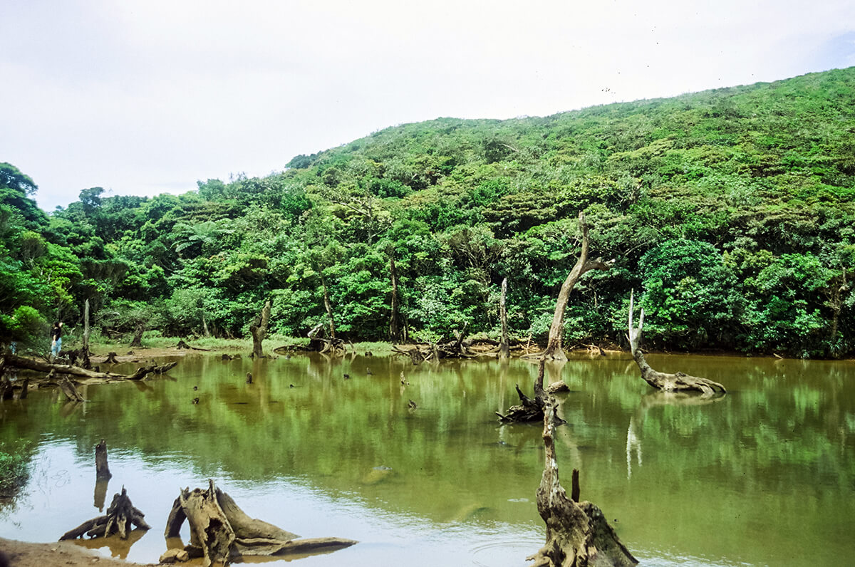 大天池位于兰屿的东南方,在达悟族人(雅美族人)语中称为「DuWaWa」,意思是指「高山之海」或者是「鬼魂出没之处」。大天池为火山岩浆喷出的火山口,因雨水冲积形成的高山湖泊,湖中仍有许多枯立的树木屹立,形成特殊原始的景观。
