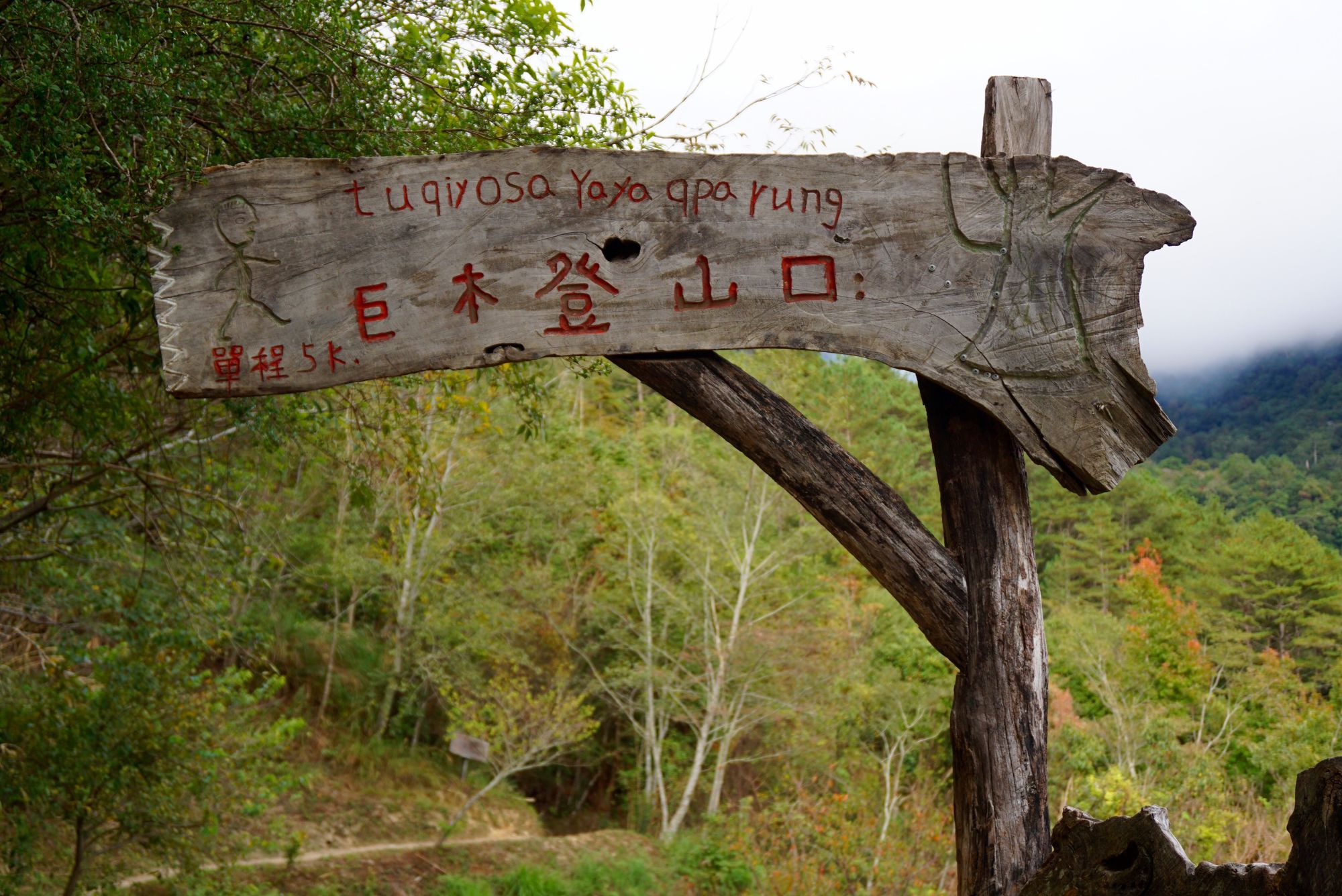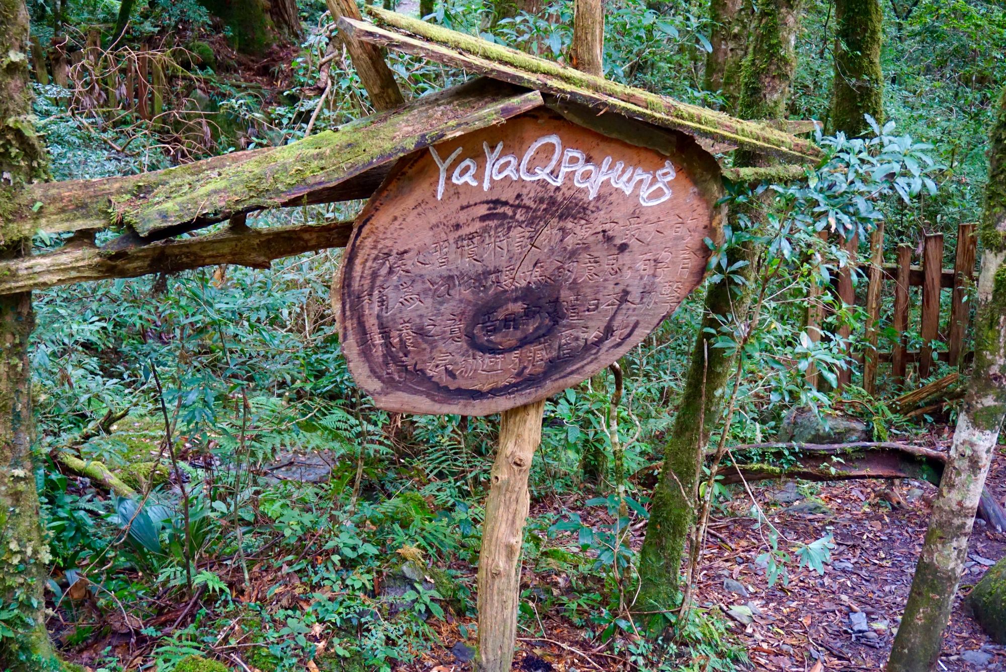 - 位于部落入口处附近,看见此标示牌时,即代表已正式进入部落。(Photo via "礼名画的生活旅游日记" © 104/11/23 司马库斯 上帝的部落 @ flickr, CC0 1.0 DEED)