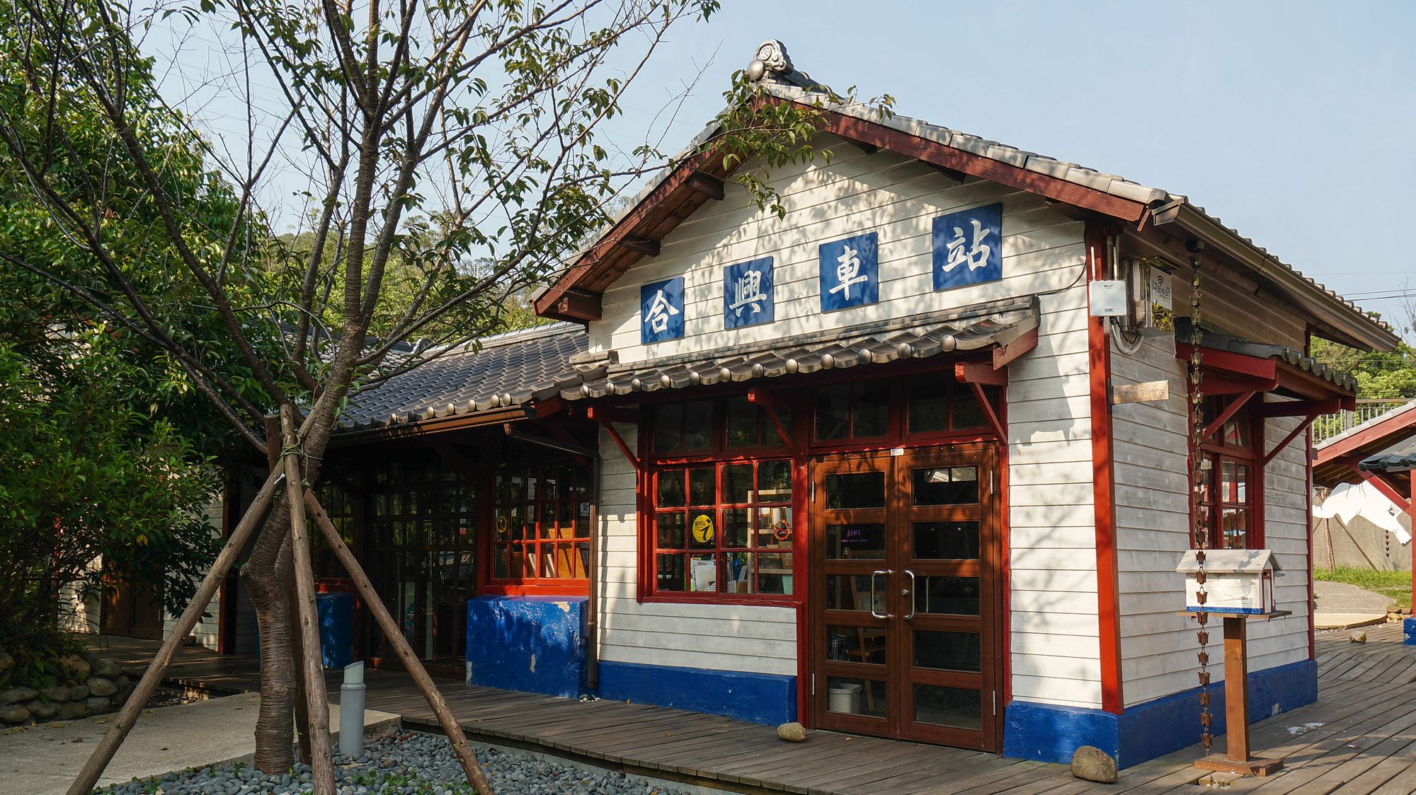合兴车站为新竹内湾支线的车站,保有古朴日式木造风格建筑的车站,走入站内还有保有旧式的售票窗口摆设存在,旧有的候车亭经设计后,转变成挂满许多古董的时钟,时间在钟摆的光影下旅行,细看透明玻璃上还有让人再三品味的文字批注,在不同的时间里阅读着微缩胶卷的爱情故事。