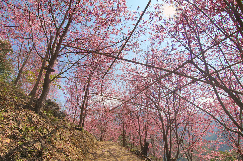 司马库斯栽种2000多棵的樱花树,种类昭和樱、山樱花、八重樱、普贤象樱、雾社樱、吉野樱等品种。每逢樱花季,艳红、粉红到粉白色的樱花花色在山林间接力绽放,替部落增添粉嫩春色,成为知名的赏樱胜地。