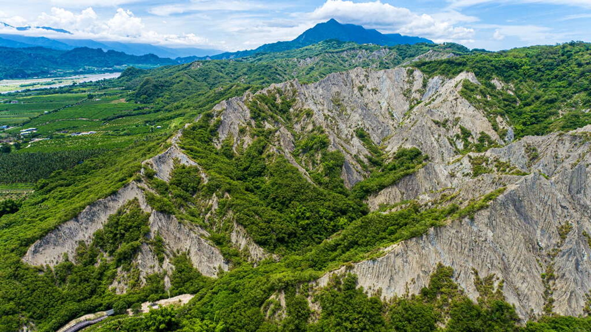 (图片来自花东纵谷风景区管理处) 「利吉」是原阿美族部落之名(Ligiligi),利吉恶地,宽二公里、深一公里,为菲律宾海板块前缘,之所以称为恶地,乃由于这里遍布孔隙小、透气性与渗水性差的泥岩,干燥时地表看似坚硬,但大雨来袭时,雨水沿着脆弱的地表侵蚀出一条条雨蚀沟,少有植物能在这样严峻的地表上生存,放远望去,宛如置身寸草不生的月球表面,成为游客拍摄粗犷荒凉系美照的拍摄地。