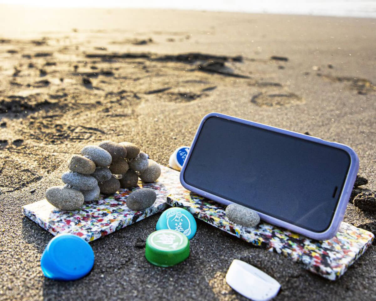 从净滩开始做起,实际走入新屋海岸,拾起海洋废弃物,经过工作人员繁琐的前置作业:清洗、晒干、分类、分色、破碎、加热等步骤所制成的缤纷砖,作为手作DIY活动的素材,透过实际手作DIY让废弃物成为专属的实用小物,延续物品的使用寿命。