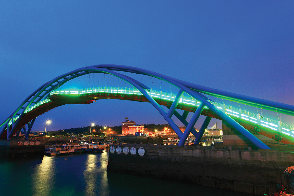 Photo via "Jason Liao" © "愉"港. 永安渔港,渔港,港口,彩虹桥,桥梁,桥,渔业,船,游艇, 观光船,黄昏,夕阳,夜景,桃园县,新屋乡,桃园,新屋 @ flickr, ATTRIBUTION-NODERIVS 2.0 GENERIC