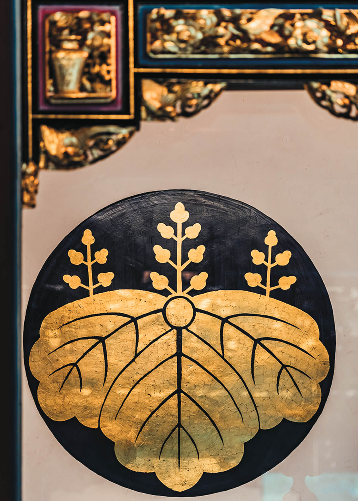 寺前两座仿唐样式的日式石灯,刻有「明治三十九年」字样,护龙对联题署「清同治十二年」年号,在在显示历史长河中政权的转换。