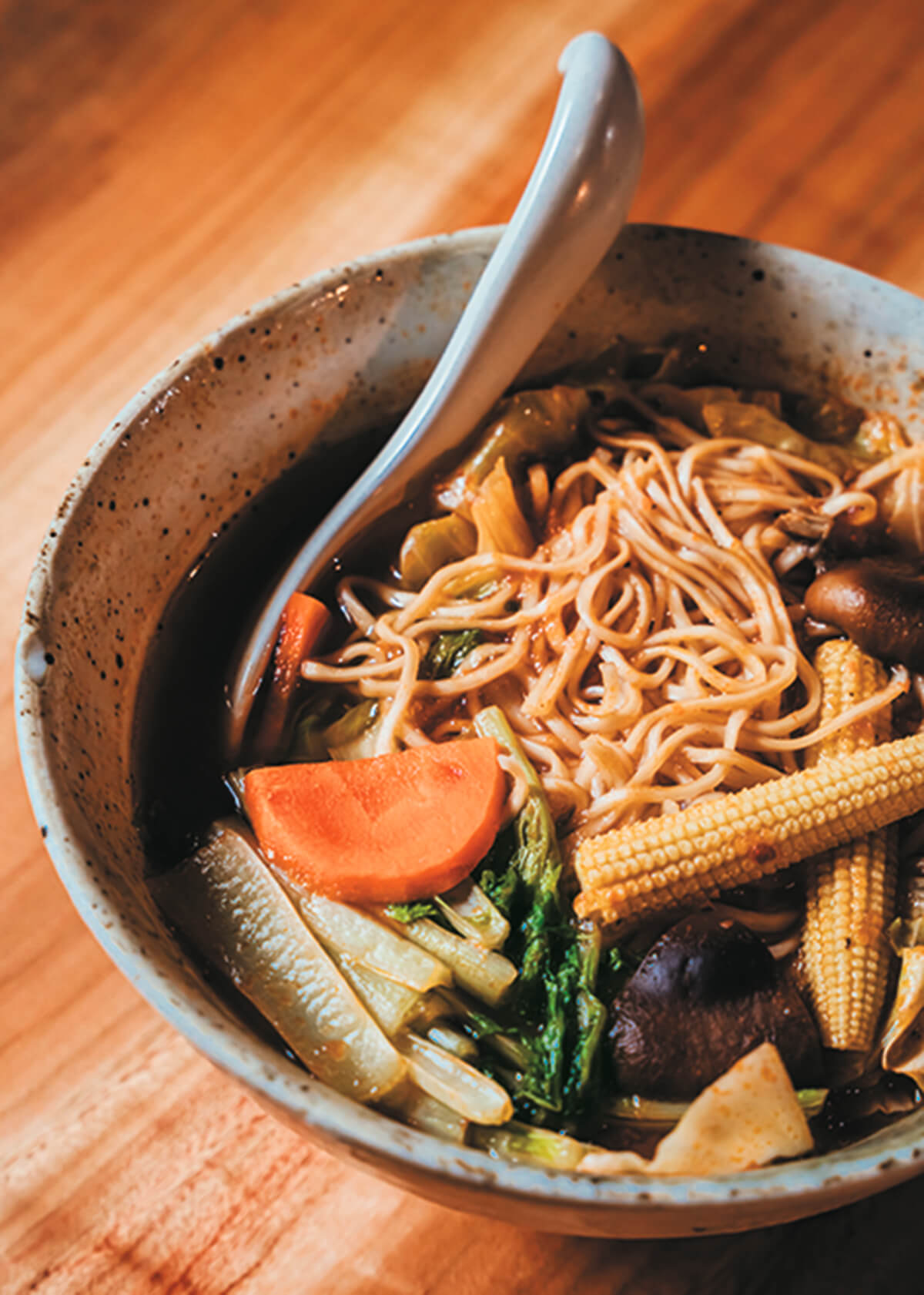身为家中最小的孩子,姚世豪从小看著妈妈下厨,耳濡目染,烧得一手好菜,虽都是家常料理,口味却精致素雅,俨然是传说中「被木艺耽误的大厨」。特别是其中一道「番茄面」,源自姚逢时笃信佛教,与佛光山结缘逾四十年,曾发愿要供养来店里用餐的法师,番茄面的做法,就是和某位师父交流习得,慢火熬上五小时的汤头,酸甜鲜美。
