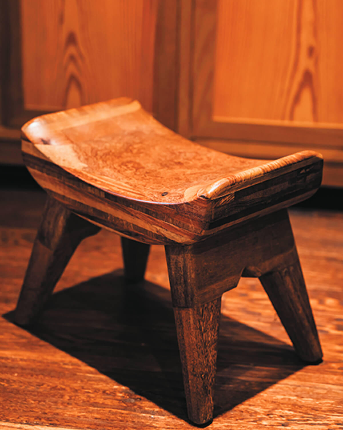 大溪的传统木艺是以佛桌为主,姚世豪承袭家业后,从日常生活寻求灵感,用工厂剩料为女儿做的第一张椅子「微笑椅」,配合臀型的椅面弧度大受好评,成为转型代表作。置身「姚茶馆」古色古香的空间用餐,又能试坐现代家具,环绕身边的是阿嬷留下来的古早红眠床、五斗柜,格外有穿梭古今的自在悠闲。