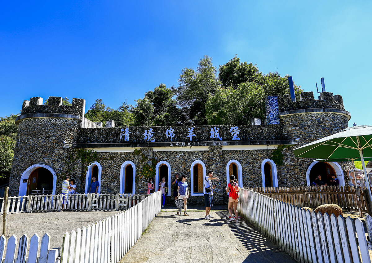 在青青草原的东北角,一座由石头堆砌而成的清境绵羊城堡,悄悄地矗立在那里。它那宛如中世纪欧洲城堡的造型,为青青草原增添了一抹典雅的色彩。城堡内圈养著一群可爱的绵羊和小羔羊,是亲子同游的最佳去处,也是幼童们体验喂食绵羊的绝佳地点。