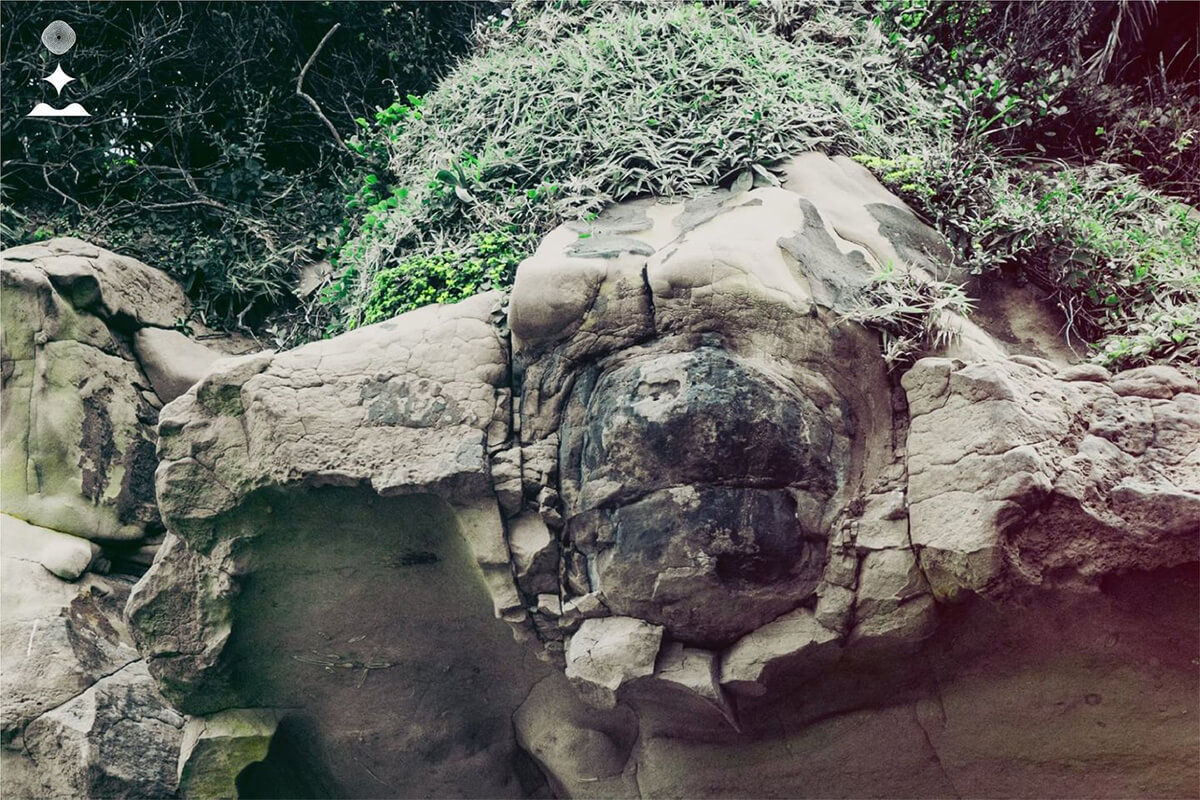 据说在二千五百多万年前,和平岛周围还是一片汪洋,岛上地形因受长期风化侵蚀与浪涛冲击,形成了蕈状石、豆腐岩、海蚀平台等奇特地貌,宛如一座大自然美术馆!十个造型特殊的石头分别为猪头岩、人面狮身岩、海豹岩、弹涂鱼岩、海兔岩,以及位在秘境阿拉宝湾的金刚岩、法老岩、鳄鱼岩泪、黑鸢岩、花豹岩。其中有五颗守护岩位于阿拉宝湾区域,一起来秘境探索季节限定美景。