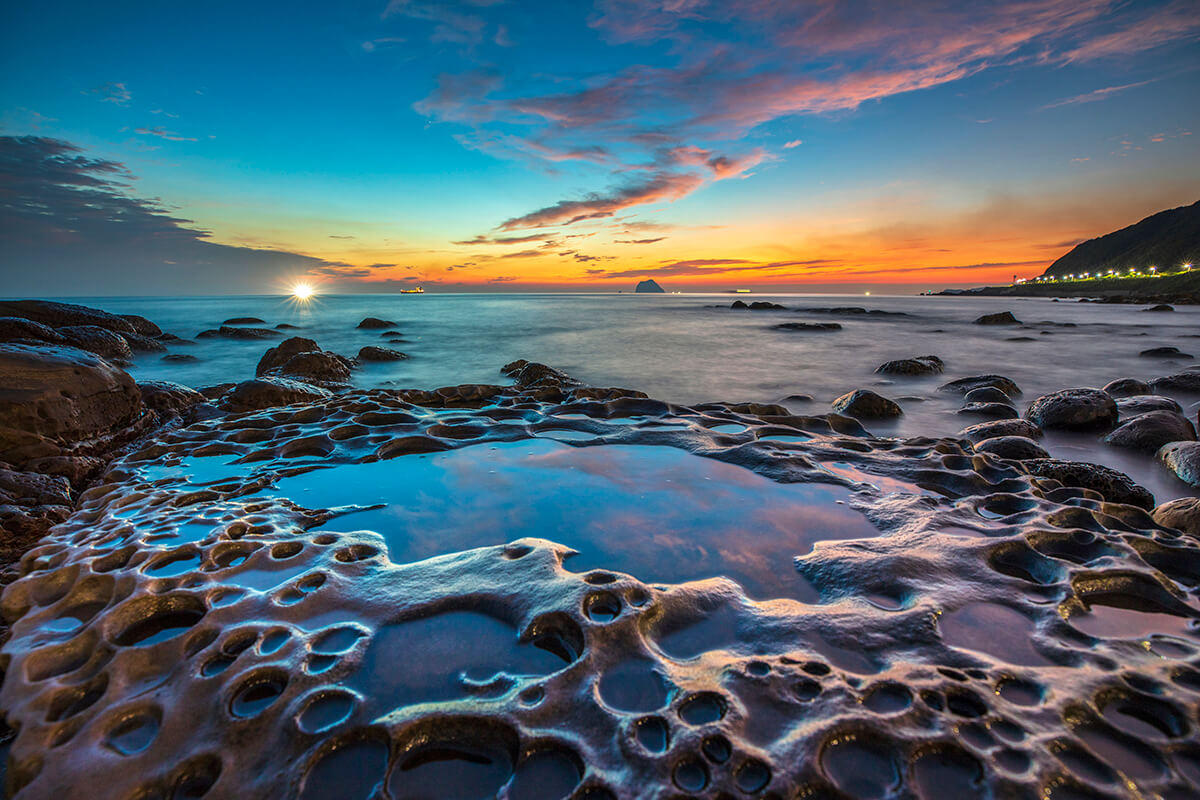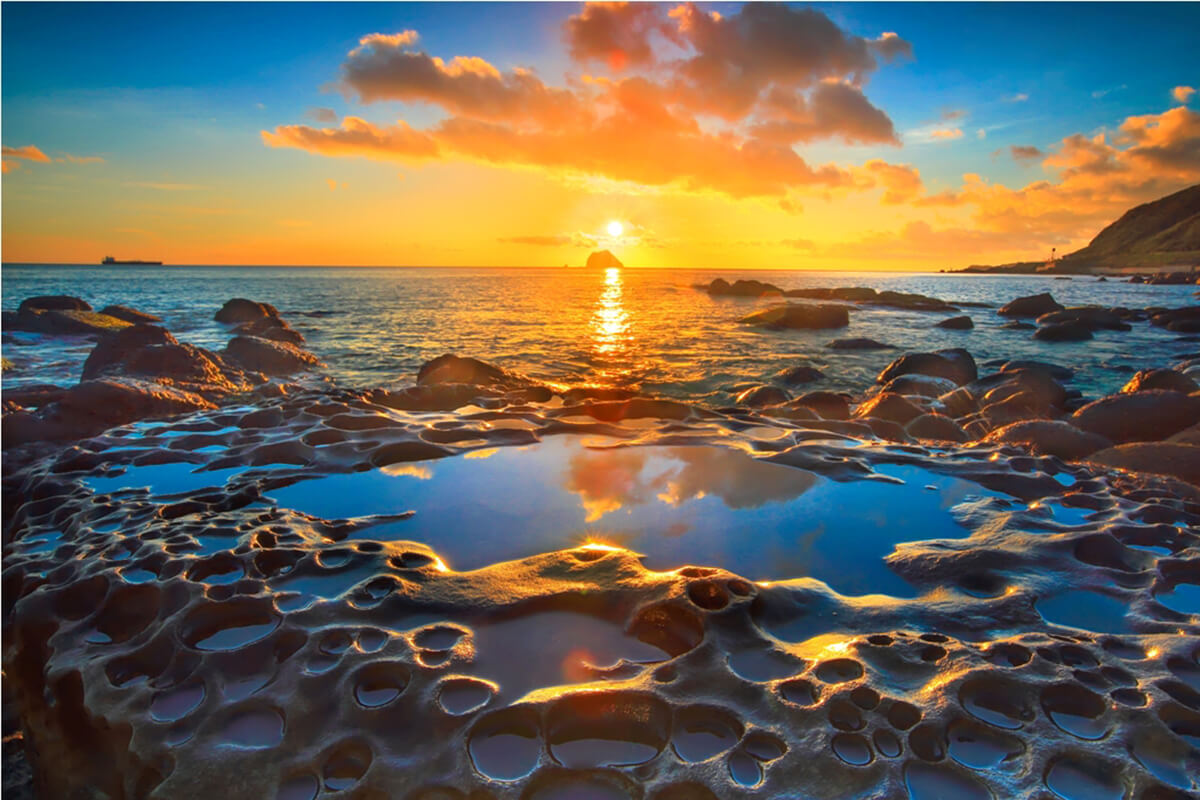 被外媒评选为全球最美日出观测点之一的「阿拉宝湾」,位于和平岛公园内的东侧。(图片来自和平岛公园提供)