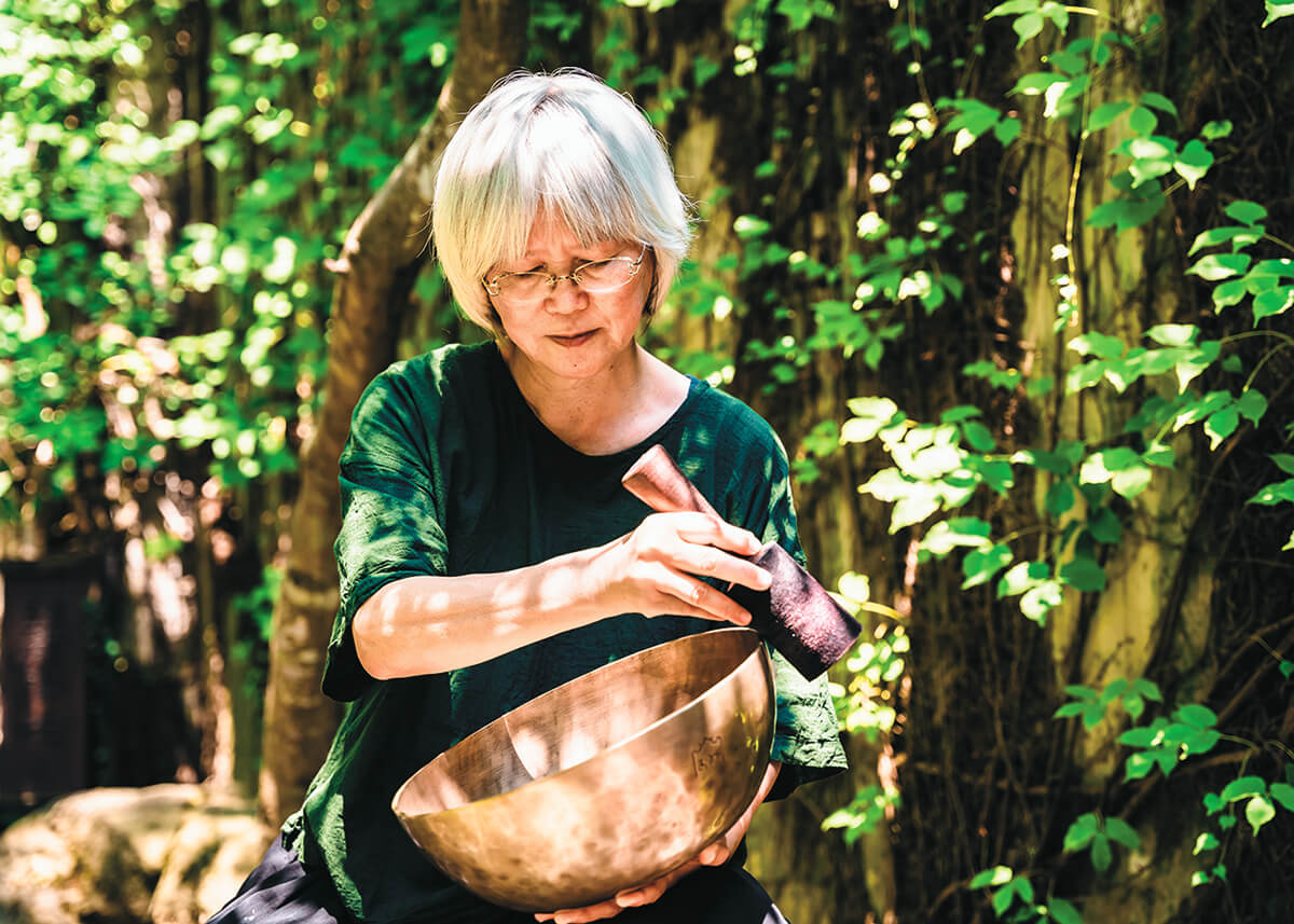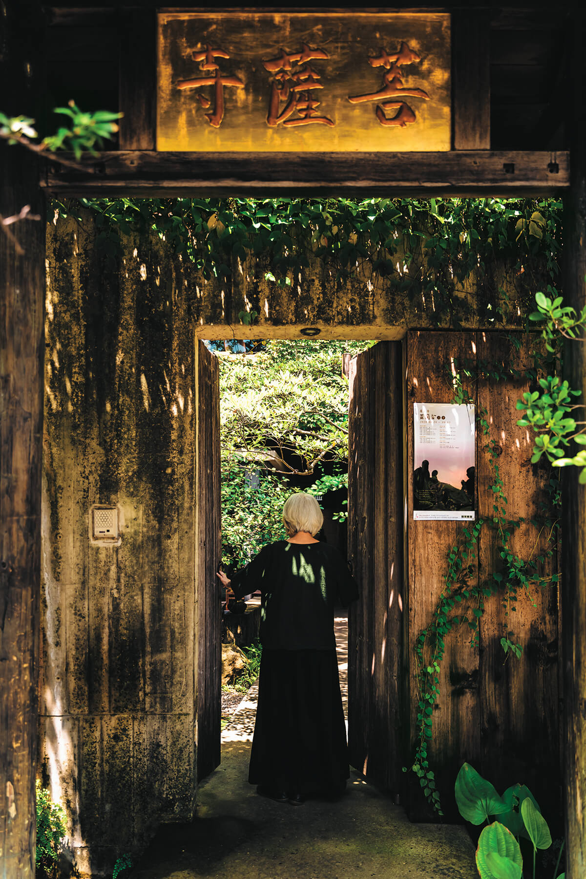 「菩萨寺的外观不太显眼,门设计得很小,目的是希望来的人可以自己抉择,是否愿意推开这扇代表勇气的门,探索生命的更深处。」菩萨寺执行长叶本殊一派自在地坐在树下的大石头上,笑眼弯弯地解释道。